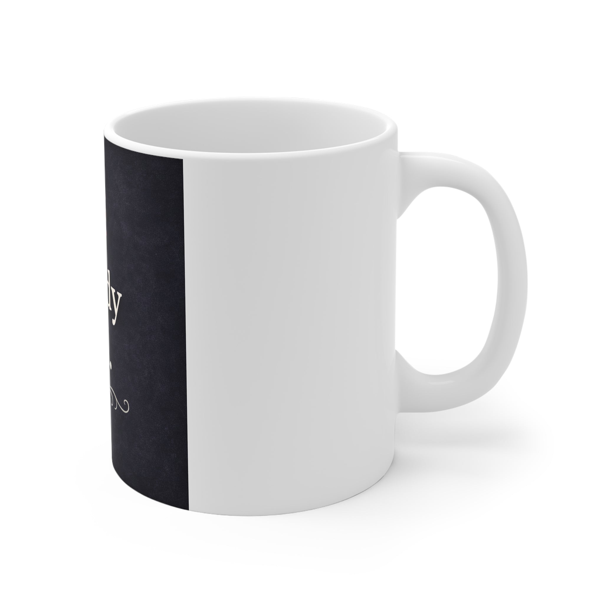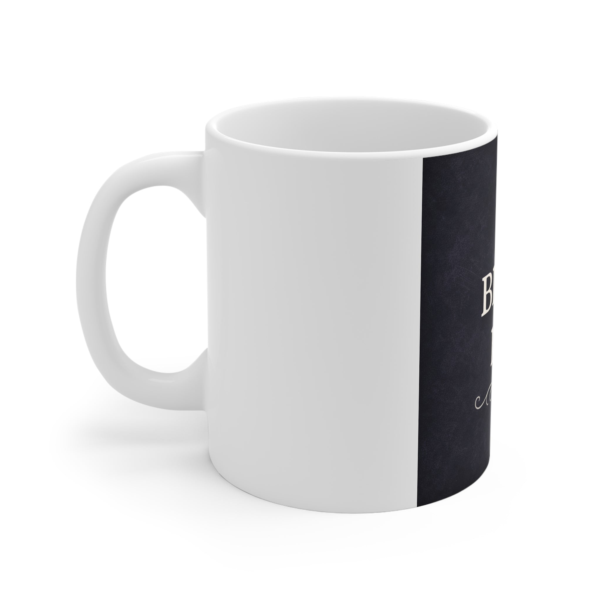- 11 oz white ceramic with comfortable C-handle