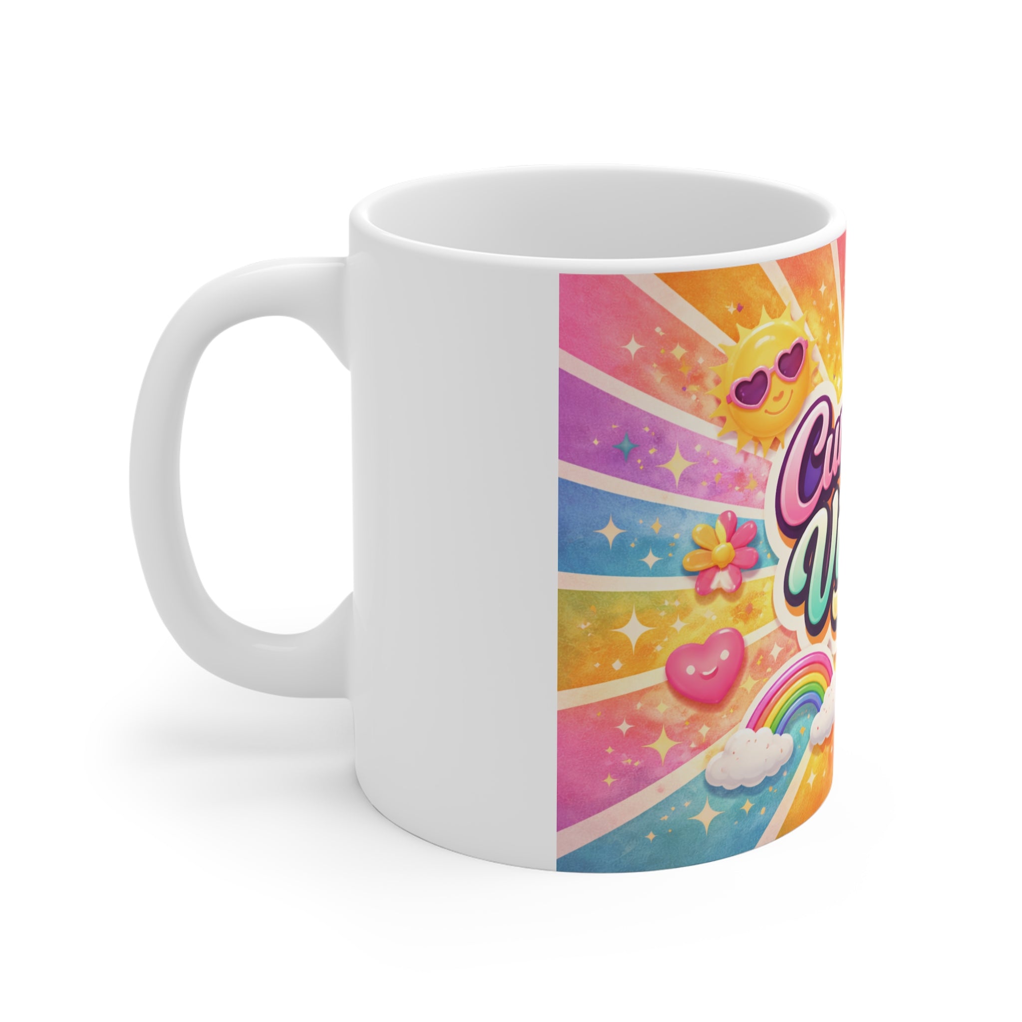- 11 oz white ceramic with comfortable C-handle
