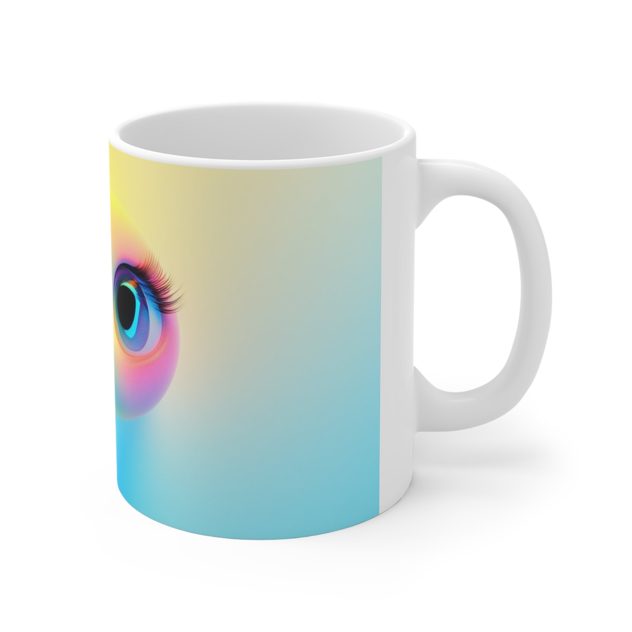 - 11 oz white ceramic with comfortable C-handle