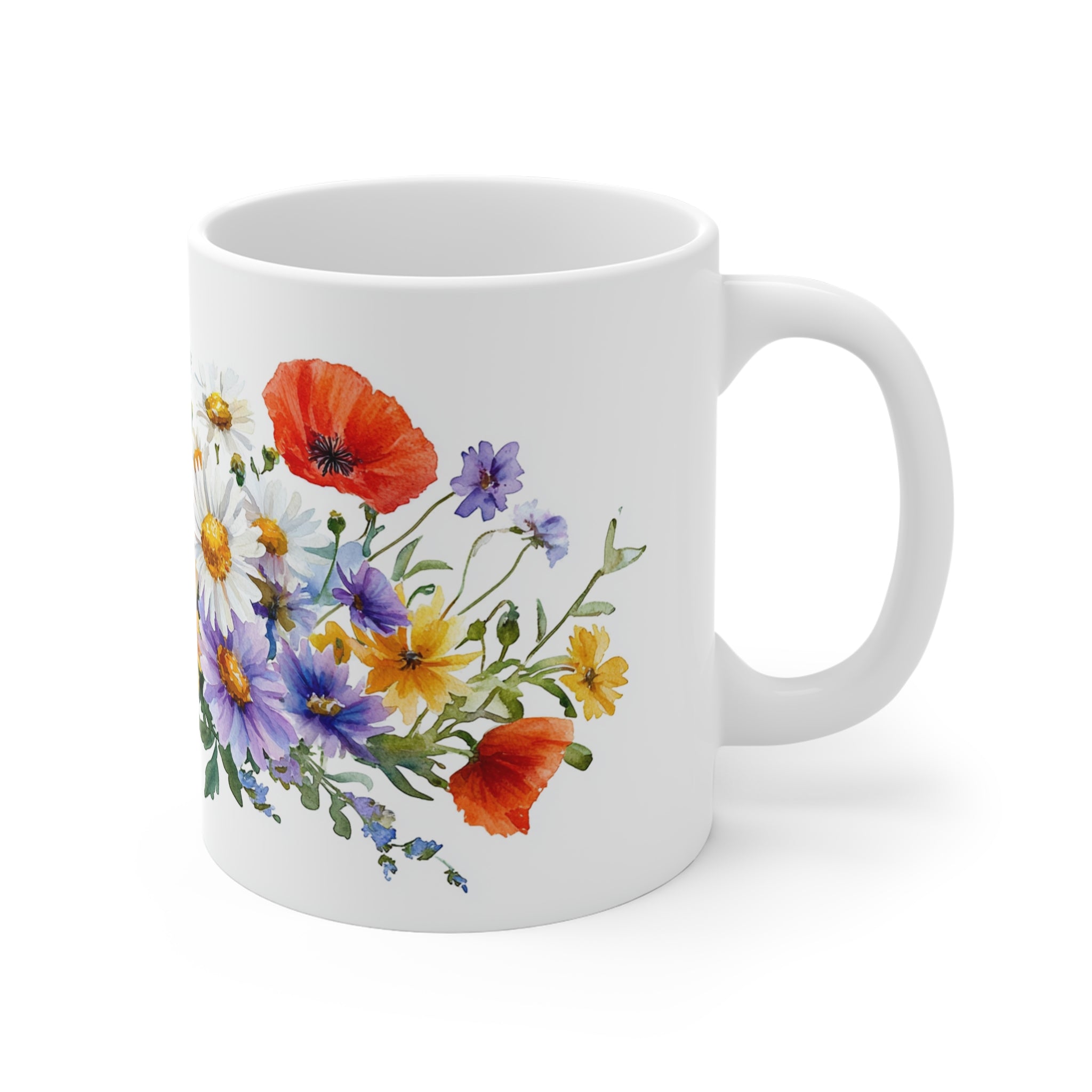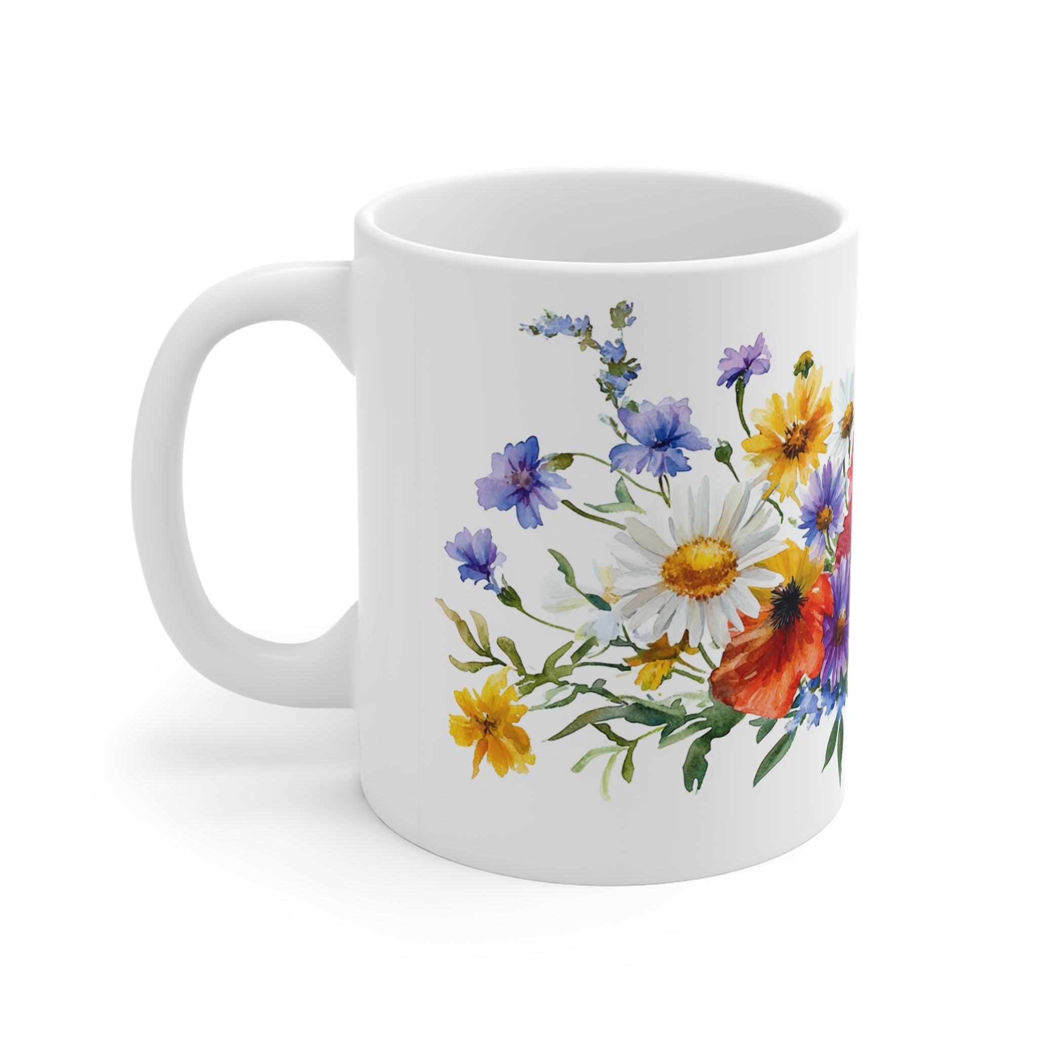 - 11 oz white ceramic with C-handle for comfortable grip