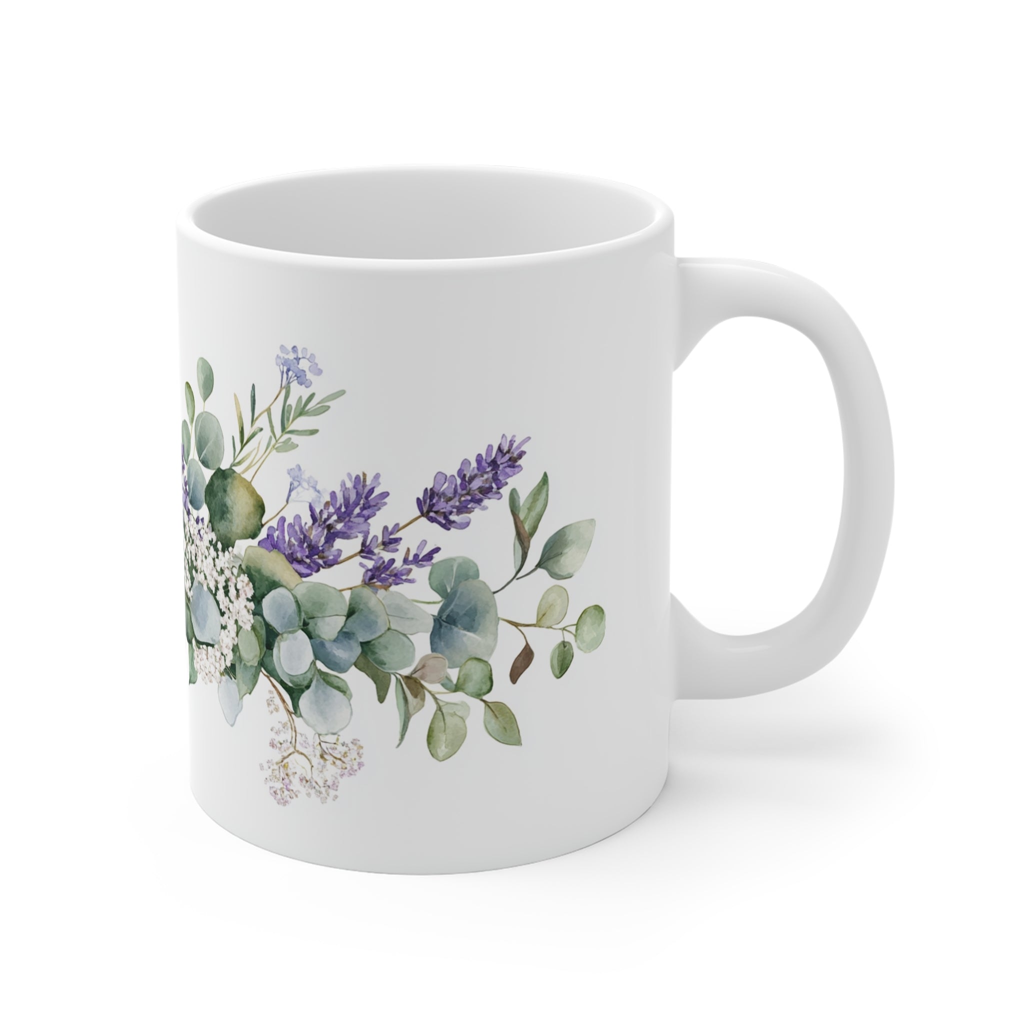 - 11 oz white ceramic capacity with a comfortable C-handle