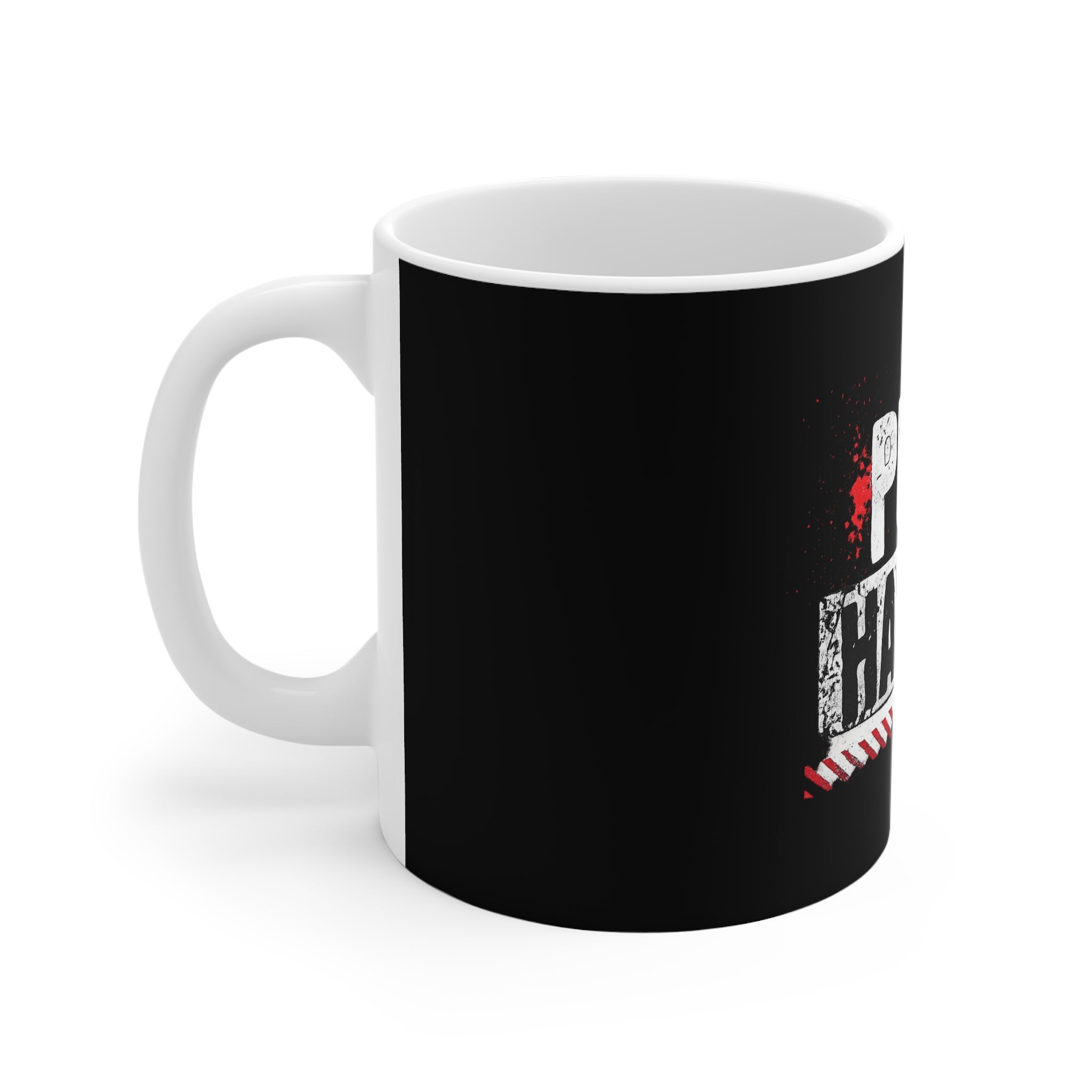 - 11 oz white ceramic with comfortable C-handle