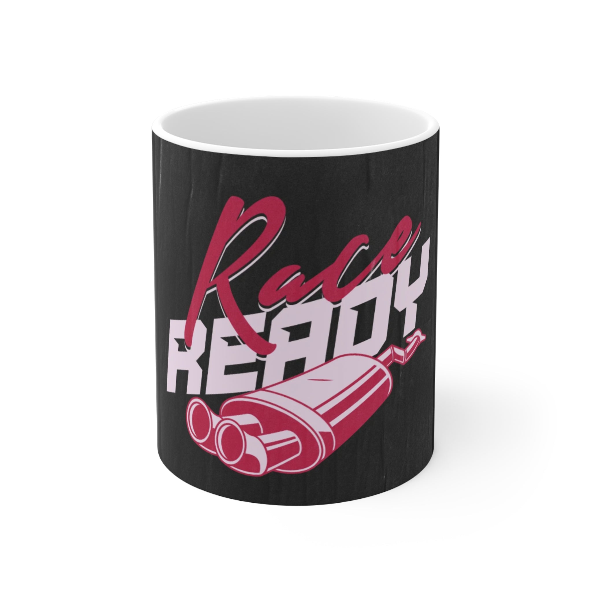 xThis 11 oz white ceramic mug brings a rush of energy to every morning. Bold magenta and white graphics stand out against a charcoal woodgrain backdrop, featuring a stylized exhaust and the words “Race Ready” — a small, confident declaration for anyone who lives for speed. The comfortable C-handle and glossy AAA+ ORCA coating keep the design vivid through everyday use. Use it at your workbench, on the commute, or while planning your next track day — it feels like a nod to the garage, the grid, and the throttle-first mentality.