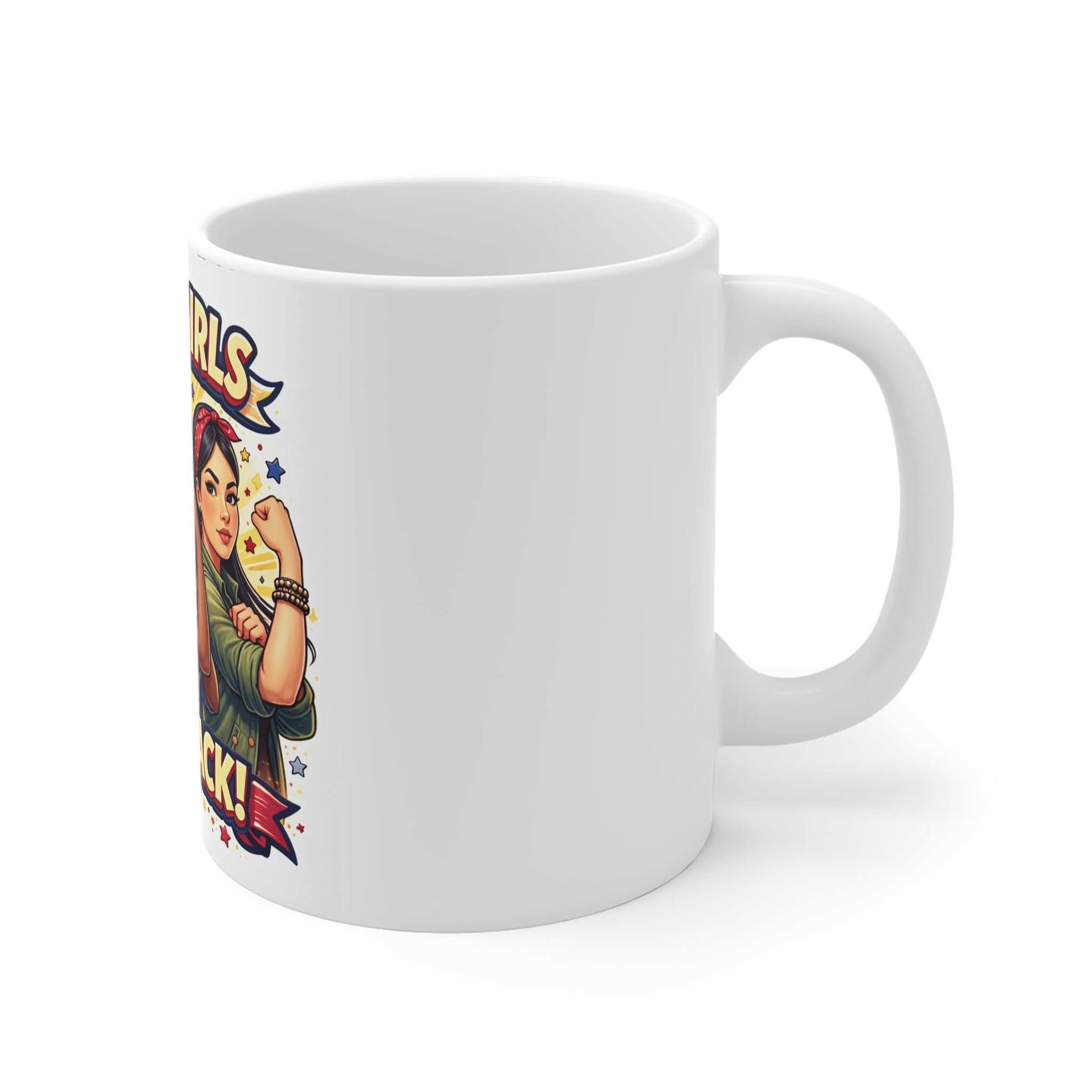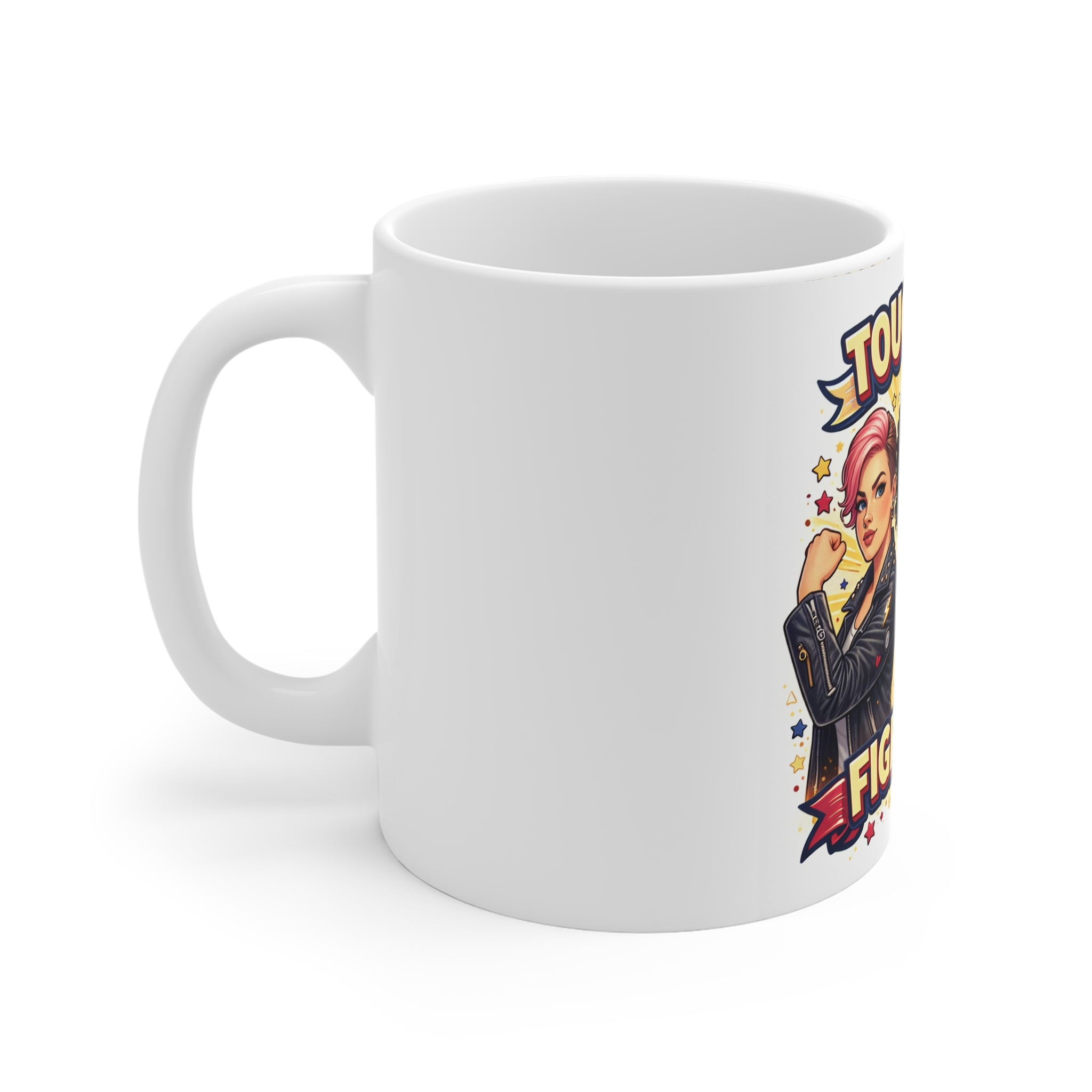 - 11 oz white ceramic with comfortable C-handle