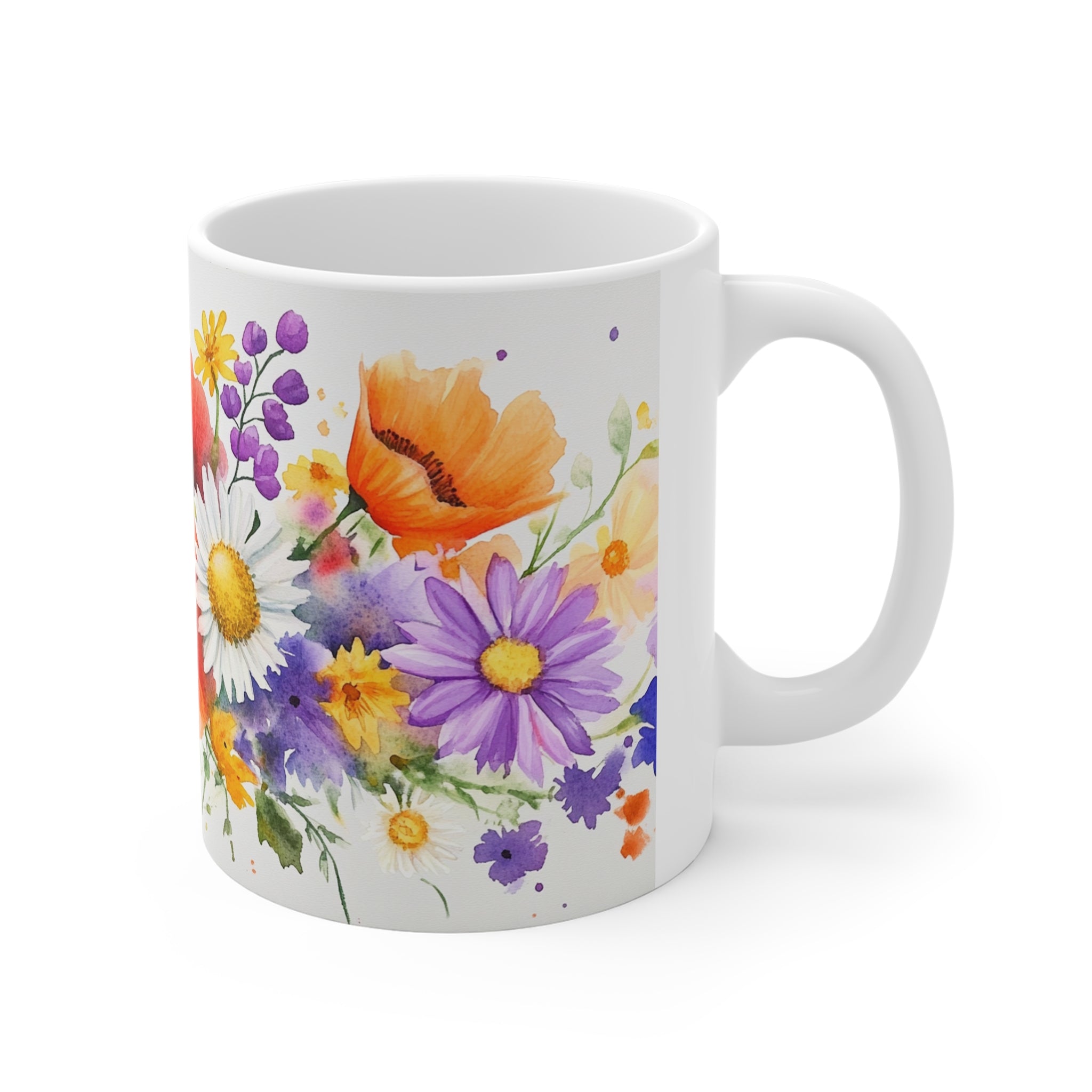 - 11 oz white ceramic mug with comfortable C-handle